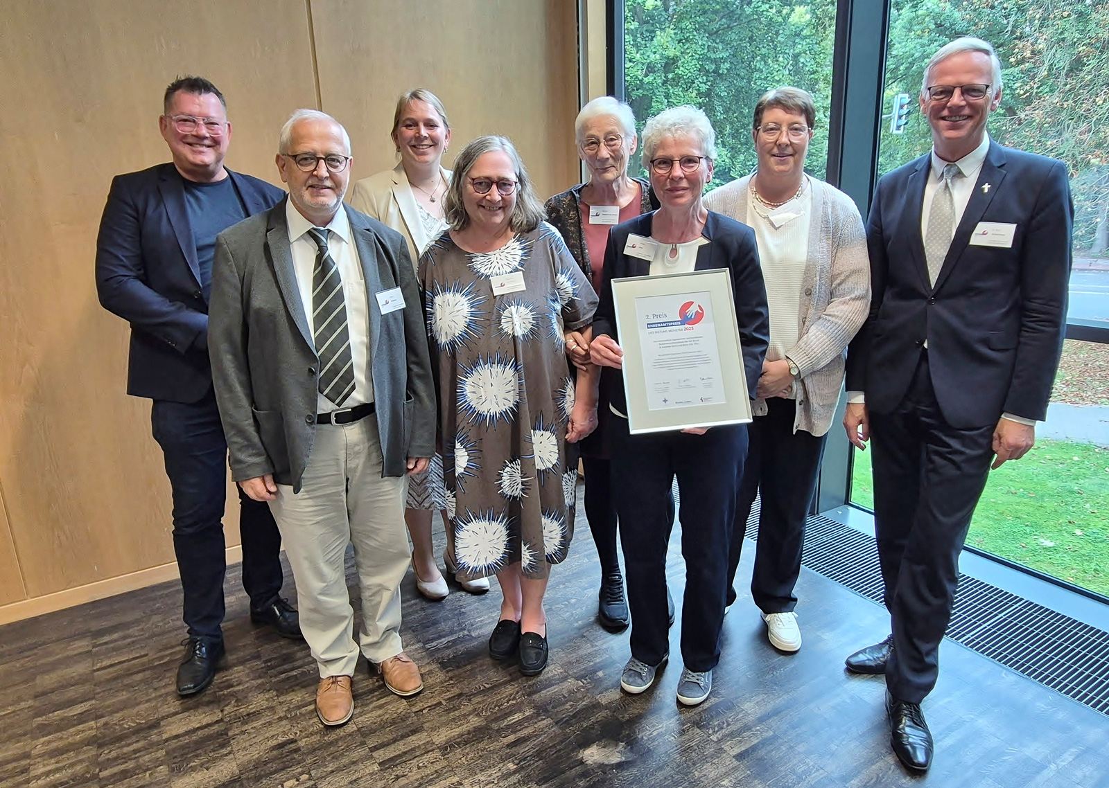 Christel Dicks vom KuK Kevelaer (3.v.r.) nimmt in Münster den Ehrenamtspreis von Generalvikar Klaus Winterkamp (1.v.r.) als ständigem Vertreter des Bischofs in Empfang.